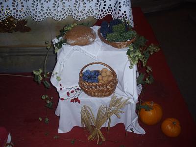 V neděli dopoledne byla mše svatá, při které se děkovalo za úrodu a také zazpívalo Pěvecké sdružení Vítězslav Novák ze Znojma.